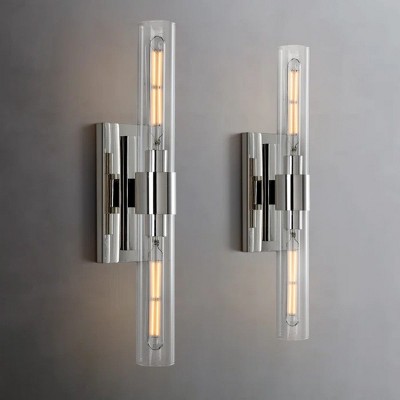 Exuding an industrial charm, this wall light offers a visually appealing aesthetic. The sleek design features clear glass cylinders that elegantly extend from a rectangular wall plate. Whether mounted horizontally or vertically, these versatile fixtures allow you to achieve the perfect look for your space. Enhance your trendy bath, hallway, or any other walls in your home with the addition of this stylish and versatile wall light.