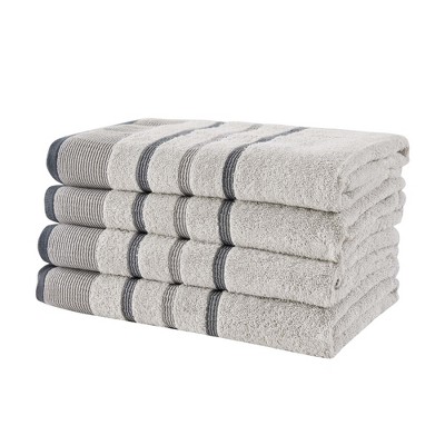 Luxury Cotton Ribbed Texture Towel Set - Great Bay Home (4 Pack Bath Towel Set, Midnight Grey)