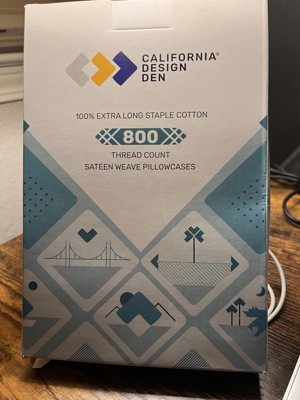 Beautiful, good quality pillow cases from California Design Den. It's an 800 thread count sateen fabric, very soft and smooth and comfortable. The cotton material is strong, cool to the touch and washes well and dries well.