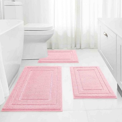Luxury Reversible Bathroom Rugs Set, Washable Rug, Extra Soft and Absorbent bath Rug, Kitchen Mat, Non-Slip Bath Mat Set, 2 Pcs SetS+L, Hot Pink