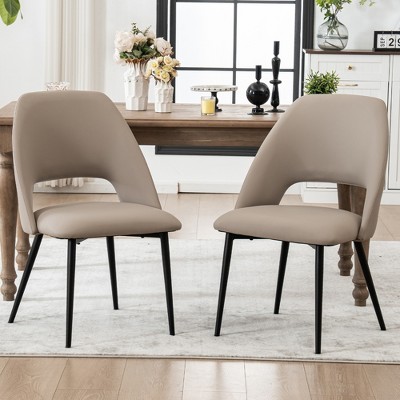 Luxury Simple Chair, Technology Material High Resilience Dining Chair w/ Metal Leg, Chair Back Has Vertical Stripe Design W/ Smooth & Uniform Lines