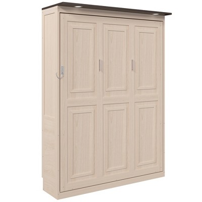 Bring smart design and modern functionality into your home with this Queen Murphy Bed Cabinet with LED Lights. Crafted for compact living, this space-saving wall bed seamlessly transforms from a sleek cabinet into a comfortable sleeping area in seconds. The durable wooden frame ensures long-lasting stability, while the built-in LED lights at the top provide warm, ambient illumination �perfect for nighttime reading or a cozy atmosphere. Designed to accommodate mattresses up to 8 inches thick, it conveniently folds up with the mattress for effortless storage. Whether used in a guest room, home office, or studio apartment, this modern murphy bed combines practicality with minimalist elegance, helping you maximize every inch of your space.