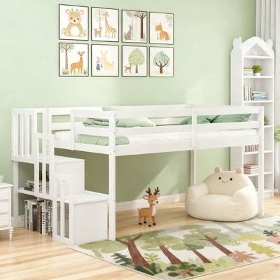 Luxystar Twin over Full Bunk Bed with 2 Drawers, Shelves and Slide for Kids' Room White
