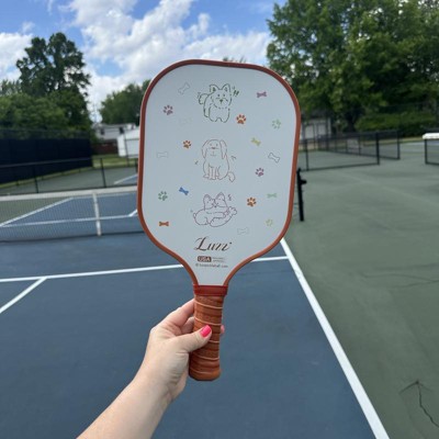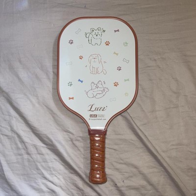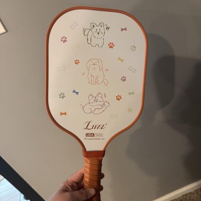 [This review was collected as part of a promotion.] This is the cutest paddle ever for pet lovers. My dogs love chasing the balls I hit with the pickleball paddle and I love having one to keep in the yard just for playing with them! The board is a good weight and excellent quality. The art is fun and it has performed as expected. The white is a matte finish so I don’t find it blinding or reflective. It’s also been easy to clean! I received an incentive to write this review.