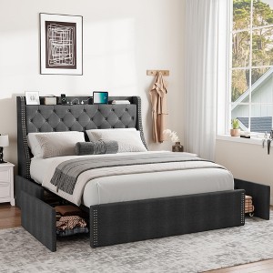 - Ample Storage Space: Features 4 spacious wheeled drawers under the bed for easy-access storage of bedding, clothes, or accessories, plus a wingback headboard with shelves for books and decor.