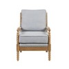 A: The chair exemplifies a commitment to durability through its meticulously crafted design, boasting a robust solid hardwood frame. This signifies that not only the legs but also the arms and the spindles in the back of the chair are fashioned from solid wood, enhancing the chair's overall strength and longevity. The choice of Camel Oak wood lends the chair a warm and opulent finish.