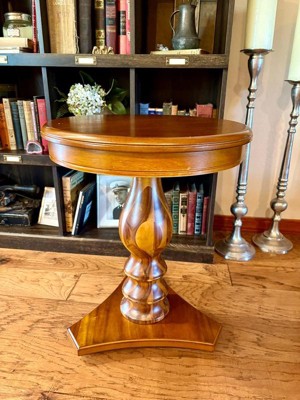 Lyla Traditional Side Table Hazelnut Brown - Powell: Elegant Pedestal, Beveled Edge, Rubberwood