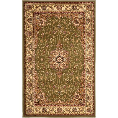 Elevate your living space with the timeless charm of our Sage/Ivory small rectangle area rug. Sized at a versatile 3 feet 3 inches by 5 feet 3 inches and boasting a comfortable pile height of 3/8 inch, this exquisite piece is a seamless addition to any room in your home.