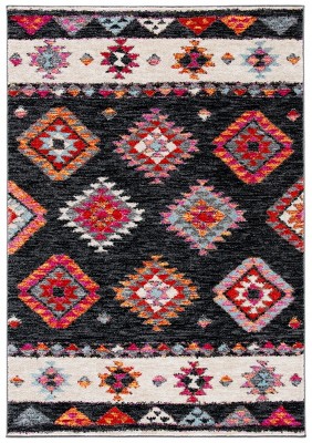Constructed with the utmost care from high-quality polypropylene pile, this rug boasts not only durability and easy maintenance but also a comfortable underfoot experience with a pile height of 3/8 inches. The traditional design elements are beautifully displayed on this rug, featuring rich black and vibrant red tones that bring warmth and sophistication to any space.
