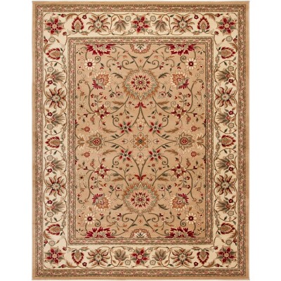 The intricate pattern on this area rug reflects a traditional sensibility, with a nod to the opulence of old-world design. Flourishes of floral arrangements and ornate details adorn the rug, with a crisp and defined border that adds a distinguished frame to the artistry within.