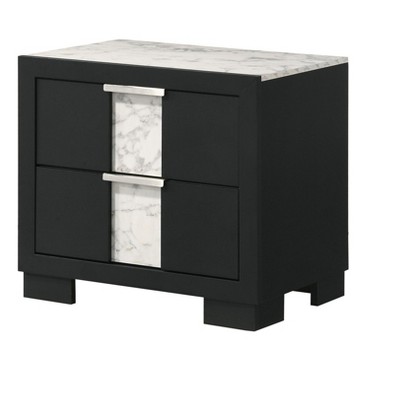 This nightstand features neutral tones and clean lines for a modern look that blends effortlessly into any bedroom decor.