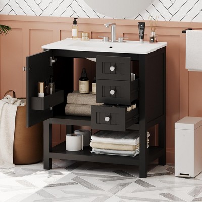 This bathroom vanity offers multiple compartments for easy storage of various toiletries,keeping your countertop clutter-free.