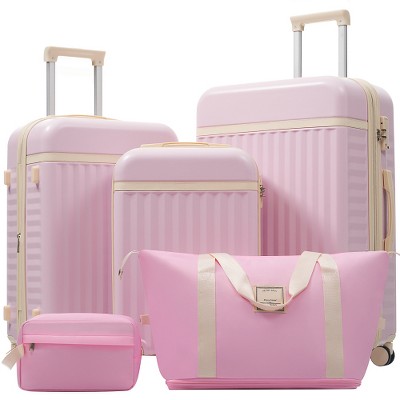 Lyngins 20/24/28 Inch 7PCs Luggage Sets with Spinner Wheels,Built-in TSA-lock,Telescopic Handle,4 Storage Bags,Suitcases Sets for Family Trips,Pink