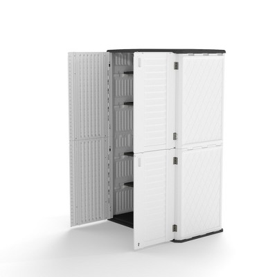 Lyngins 28 Cu. Ft. Outdoor Storage Shed with Removable Shelf, All-Weather UV-Stabilized Outdoor Storage Box, Dual-Lock System, Patio Storage Box,White