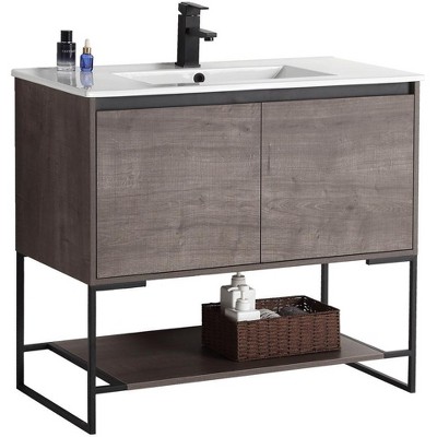 Lyngins 30" Freestanding Bathroom Vanity with Sink, Soft Close Door with Shelf & 3 Drawers, Modern Bathroom Storage Cabinet with Ceramic Sink, Gray