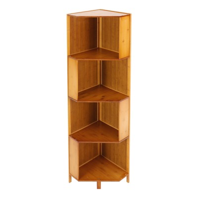 Lyngins 4-Tier Rotating Corner Bookshelves with Lockable Caster Wheels,Display Bookshelf Tower,Rubberwood Bookcases for Small Space,Office,Walnut