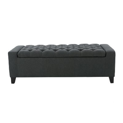 Lyngins 47" Rectangle Ottomans,Tufted Ottoman Benches with Geometric Base,Versatile Upholstered Footstools for Bedroom,Living Room,Entryway,Grey