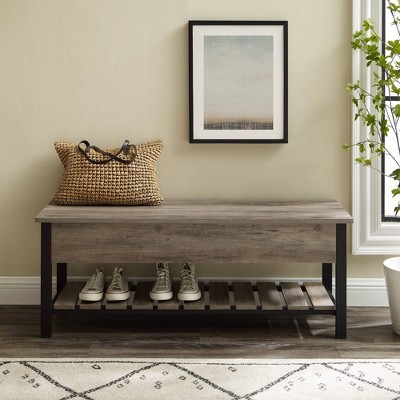 Lyngins Benches with Button Tufted Waffle Stitch Design,Ottoman Benches for Living Room,Bedroom,Light Gray