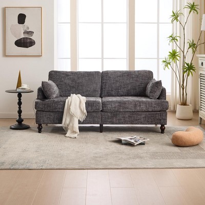 Lyngins Chenille Sofa with LED light and USB Charging Port,Upholstered Loveseat Couch with Storage Bag,Sofa Bed for Living Room,Bedroom,Gray