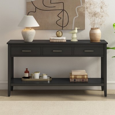 - 4 Drawers + 1 Open Shelf (Ample Organized Storage):Featuring 4 drawers (for hidden storage of umbrellas, pet stuff, or mail) and 1 open shelf (for easy access to books, magazines, or baskets), the table maximizes storage—more functional than surface-only Sofa Tables. Use the top for decor, drawers for clutter, and the shelf for frequently used items, keeping spaces tidy yet accessible. This design solves storage needs better than compact Console Tables for Entryway.