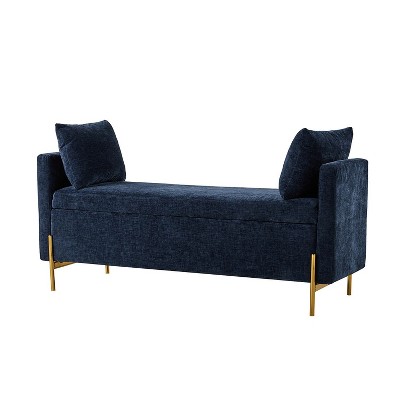 Lyngins Classic Rolled Arm Chaise Lounge with Storage, Tufted Velvet Ottoman with Storage & Pillow, Modern Storage Bed Bench with Nailhead Trim, Black