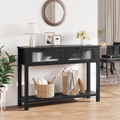 - 2 Drawers + 2-Tier Shelves (Ample Organized Storage):Featuring 2 drawers (for concealed storage of small essentials) and 2 open tiers (for display or bulkier items like bowls or vases), the table offers versatile storage to tidy your space. Unlike basic Sofa Tables with only a surface, this design lets you classify and store belongings—ideal for Entryway Tables (storing mail) or kitchen buffets (holding utensils). It provides more functionality than storage-limited Console Tables for Entryway, keeping rooms neat and orderly.