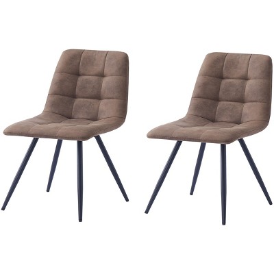Lyngins Mid Century Dining Chairs with Upholstered Seat,Kitchen Chairs Set of 2 with Adjustable Foot,PU Leather Chairs for Dining Room,Kitchen,Brown