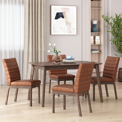 Lyngins Modern Dining Chairs with Tufted Backrest,Upholstered Kitchen Chairs Set of 4 with Curved Armrest Design,PU Chairs for Dining Room,Dark Grey