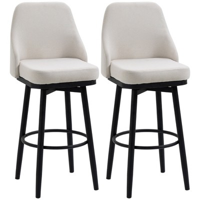 Lyngins PU Leather Counter Stools Set of 2,Bar Stools with Black Powder Coating Base and Footrest,Dining Chair for Kitchen Island,Beige