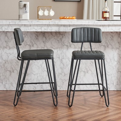 Lyngins PU Leather Counter Stools Set of 2,Bar Stools with Cane Back,Dining Chairs for Kitchen Island,Home Pub