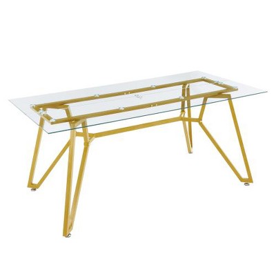 Lyngins Rectangle Tempered Glass Dining Table with Metal Legs,Safe&Durable Kitchen Table,Minimalist Table for Kitchen,Living Room