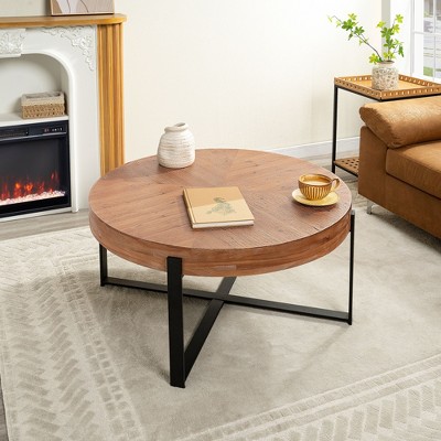 Lyngins Round Coffee Table,Modern Side Table with Black Cross Legs Base for Living Room,Offices