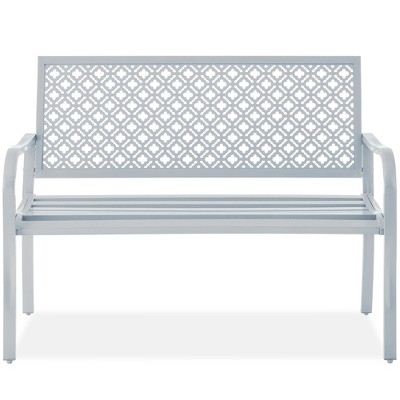 Lyngins 2-Piece Rustic Industrial Outdoor Chair, Acacia Wood Garden Bench (Teak Finish), Iron Frame (Rustic Metal), Patio Bench for Backyard/Garden