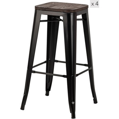 Lyngins Set of 2 Industrial Metal Bar Stools,24" High Counter Chairs with Bucket Back,Stools for Kitchen Counter,Living Room,Distressed Black