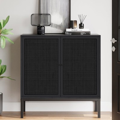 Lyngins Sideboard Buffet Cabinets with 2 Doors,3 Adjustable Shelves,Wood Coffee Bar Cabinets,Corner Cabinets,Credenzas for Kitchen,Entryway,Black