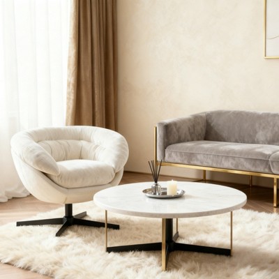 Lyngins Swivel Accent Chair with Metal Base,Upholstered Swivel Living Room Chair with Curved Backrest,Chenille Reading Chair for Bedroom,Beige