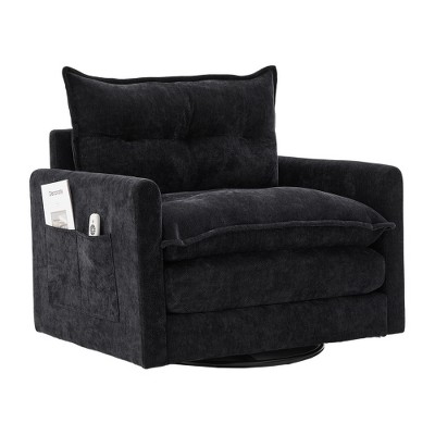 Lyngins Swivel Accent Chairs with Side Pockets and Pillow,Upholstered Swivel Reading Chairs,Chenille Sofa Chairs for Bedroom,Living Room