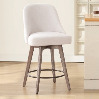 Lyngins Swivel Bar Stools Set of 2,Upholstered Counter Height Barstools with Curved Back,Thick Cushion,Kitchen Bar Stools for Dining Room,Cafe