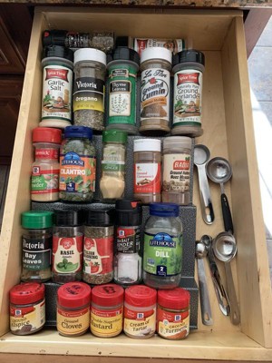This was a game changer for my spice drawer. Now I can see my spices!!! I absolutely love it, especially paired with my spice jars (also from Target). I bought two and can fit 30 spice jars total. (Note - this picture is before I finished updating the jars).
