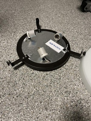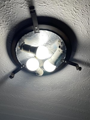 This is a high-quality fixture, no question. 3 lights can create plenty of illumination, great for large spaces with just one fixture. Installation is fiddly and requires 2 people. For that matter, changing a lightbulb will likely require two people as well, because getting the glass re-attached is not easy. But the most significant flaw is that the fixture does not look all that good when viewed from the side. The rim 1 3/4 in away from the ceiling. The unsightly arms that hold the rim are illuminated by the bulbs below them and can be seen really well. Visually, the rim is too thick relative to the light's diameter which adds to not-so-good side view. The only remedy I can think of is mounting this fixture on a very high ceiling or in a very narrow space. Then the viewing angle does not show the visual flaws.