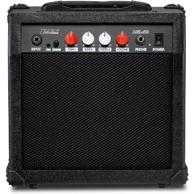 Made from quality materials, the LyxPro portable amp has hard rubber corner edges for protection against dents, added durability, and extra safety. Easily dial in your sound with integrated volume, gain, bass, treble, and grind controls in this portable amplifier for electric guitar. Keep your music to yourself using the headphone jack, or let the world hear with the powerful yet small guitar amp.