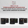 - Includes two sets of interchangeable microphone tops for omni, cardioid & super-cardioid recording.