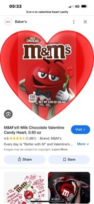 - Contains one (1) 3-ounce M&M'S Milk Chocolate Valentines Day Chocolate Candy Heart Candy Cane