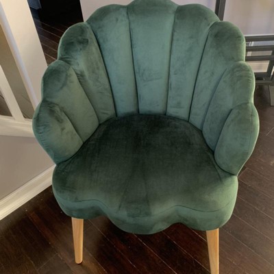 Maël Modern Scalloped Velvet Accent Chair with Solid Wood Legs | Karat Home