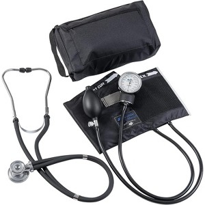 This MABIS MatchMates Blood Pressure Kit comes complete with aneroid sphygmomanometer and sprague rappaport stethoscope. The sphygmomanometer features a comfortable calibrated nylon arm cuff and the aneroid gauge shows easy-to-read numbers; perfect for those with poor vision. You can also listen to a clear-sounding heartbeat with this top quality stethoscope. It comes with all you need to examine any person: adult, child or infant. Comes with convenient carrying case.
