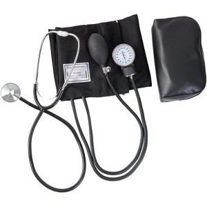 MABIS Professional Aneroid Sphygmomanometer Blood Pressure Gauge, Stethoscope and Blood Pressure Cuff, With Carrying Case, Adult Large Cuff, Black
