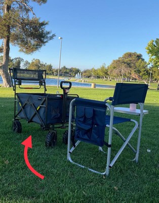 The best wagon for sporting events! Easy to fold and easy to push on grass. But be cautious there is no breaks on the wagon wheels.