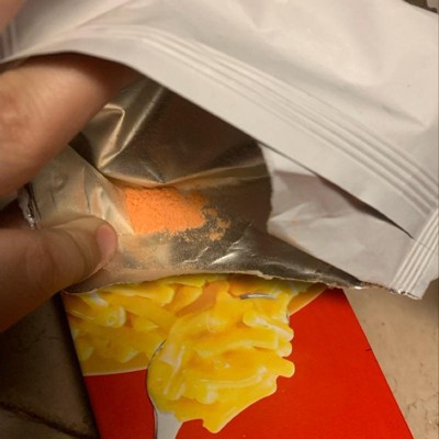 Got this thinking I was saving a few cents on an identical blue box dupe. Not the case. While the powder is weirdly reddish - the main problem is the zero cheesy flavor. Texture is norm. Not worth the savings. Target Market Pantry is usually a trusted choice but now I'll rethink my purchasing after this experience.