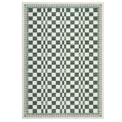 Machine Washable Area Rug for Living Room Geometric Printed Floor Cover Non Slip Checkered Rugs Stain Resistant Low Pile Carpet for Bedroom Kitchen