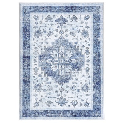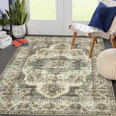 Machine Washable Area Rug Living Room Vintage Medallion Carpet Distressed Rugs for Bedroom
